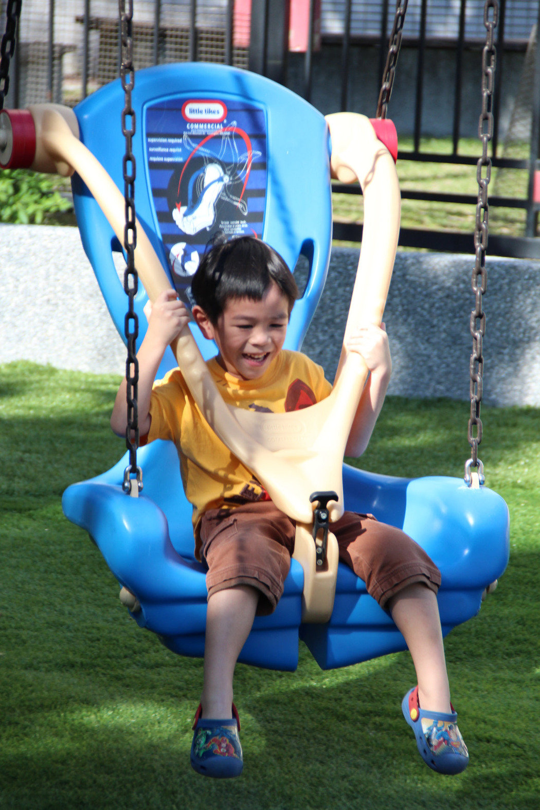 另架設了三組不同種類的鞦韆,有一般型鞦韆、適合親子共乘的網籃鞦韆與無障礙式的座椅鞦韆,